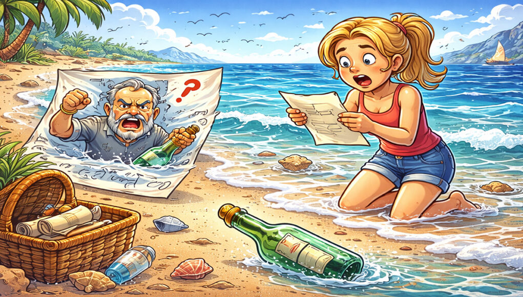 Ze schreef een lief briefje, rolde het netjes op, stopte het in een glazen fles ๐พ