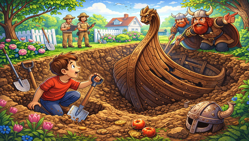 Dat gebeurde echt in Engeland, in het plaatsje Norfolk. Archeologen (dat zijn mensen die oude dingen opgraven 🧐) ontdekten daar een schip dat meer dan 1.100 jaar oud is. Dat is ouder dan je opa, oma én overgrootoma bij elkaar! 👴👵✨