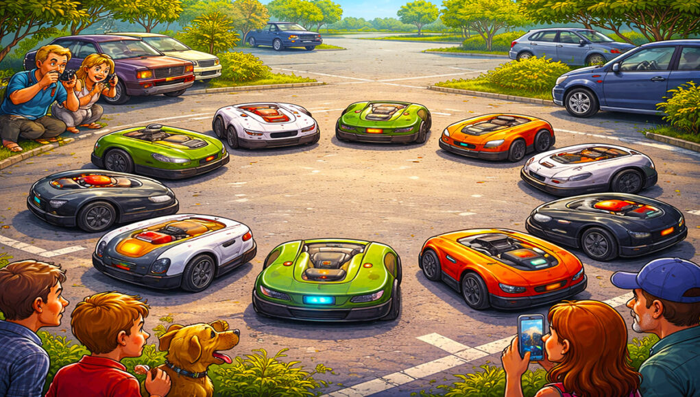 Ze begonnen rondjes om elkaar heen te rijden 🔄🤖, steeds opnieuw, alsof ze druk aan het overleggen waren.