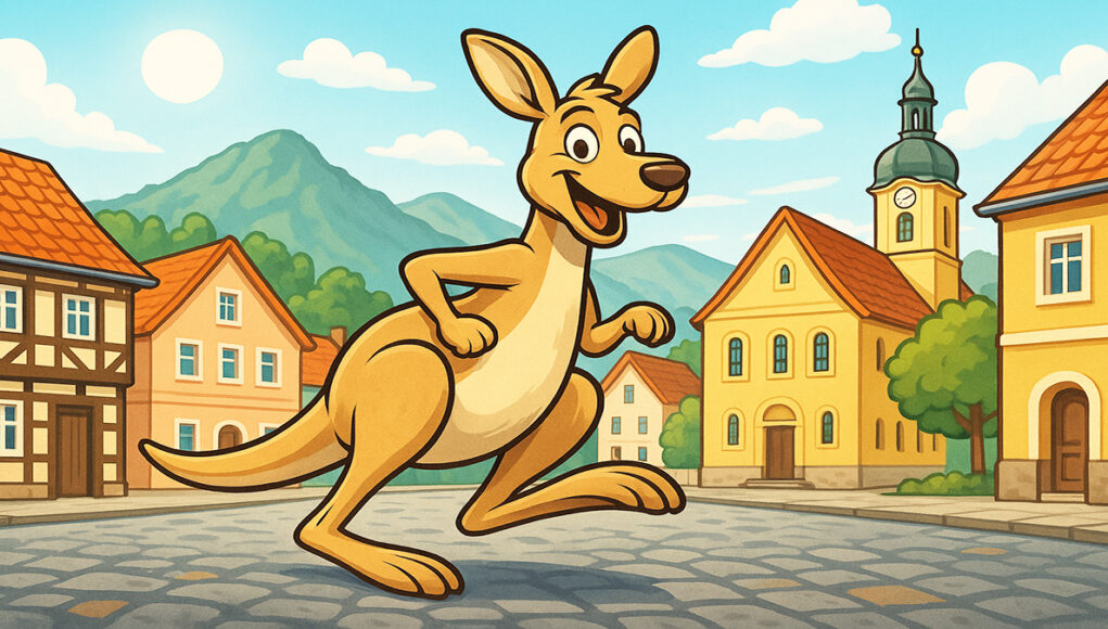 Stel je voor: je fietst rustig door een Duits stadje, denkend aan schnitzels en wiskundehuiswerk, en ineens โ€” BOING! โ€” springt er een kangoeroe voorbij! ๐Ÿ˜ฑ