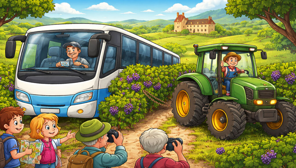 โSta je met een enorme bus midden tussen de druiven!โ ๐๐