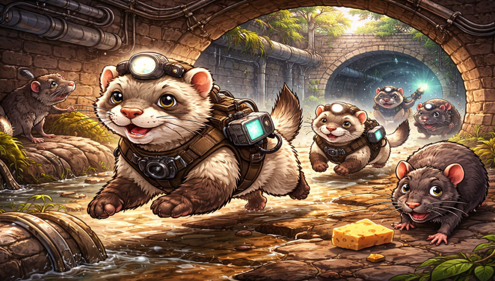 Het grappigste van alles? De fretten hoeven vaak niet eens achter de ratten aan te rennen 😄