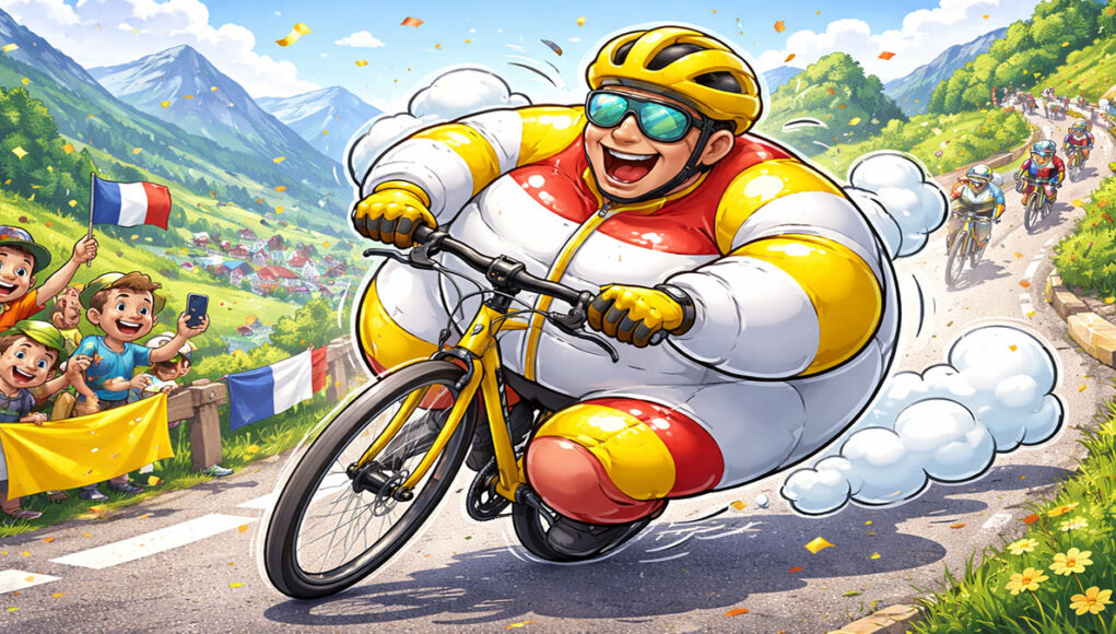 De slanke wielrenner veranderde ineens in een rond, bol figuur โ een beetje zoals een opblaasbaar mannetje! ๐