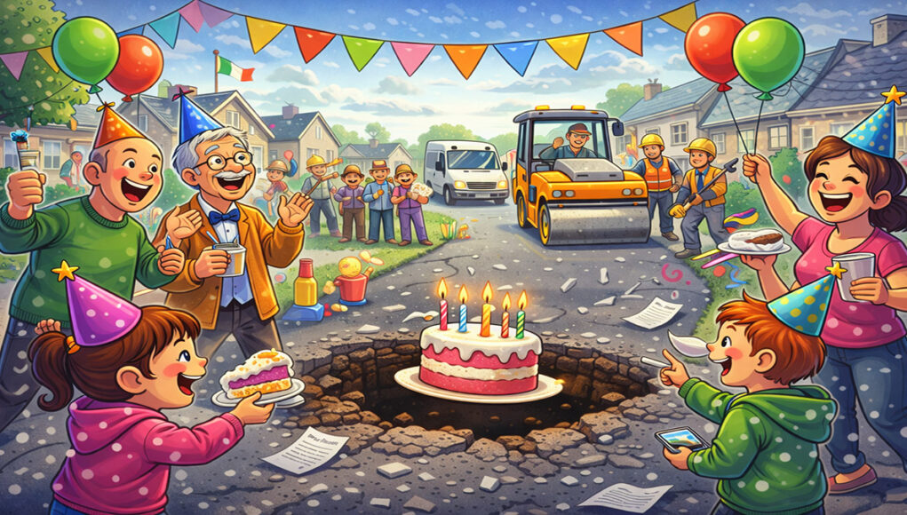 Heb jij ooit taart gegeten om een kapotte straat te vieren? Dat klinkt misschien een beetje gekโฆ maar in Ierland gebeurde het รฉcht! ๐ Bewoners van een rustige straat waren een groot gat in de weg zo zat dat ze besloten er gewoon een verjaardag voor te organiseren.