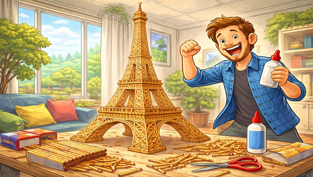 Stukje voor stukje plakte hij 706.900 lucifers aan elkaar. Dat is zóveel dat zelfs de meest fanatieke knoalster er duizelig van wordt!