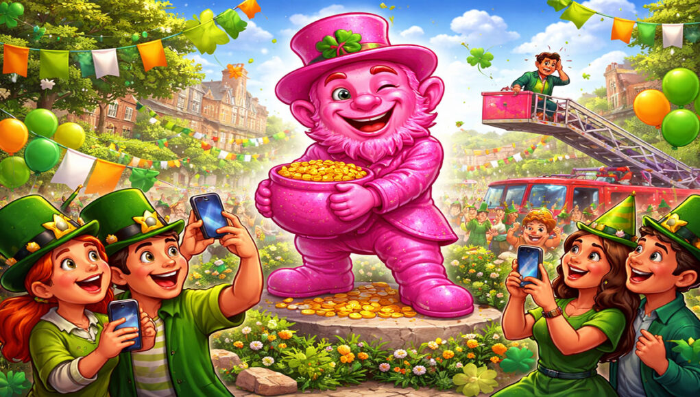 Stel je voor: je wandelt door een straat vol muziek, vrolijke mensen en overal groene versieringen โ๏ธโฆ en ineens zie je iets heel geks. Tussen al dat groen staat een felroze kabouter te stralen! ๐ฒ Dat gebeurde echt tijdens een groot feest in Ierland โ en iedereen moest er ontzettend om lachen!