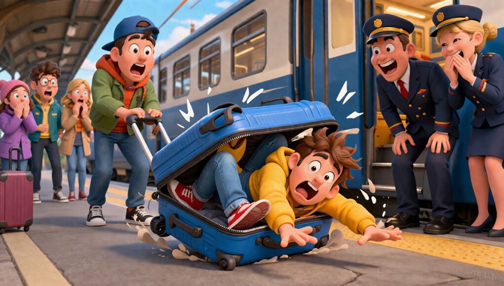 Zijn vriend probeerde zo normaal mogelijk te doen en rolde de koffer over het perron 🚶♂️