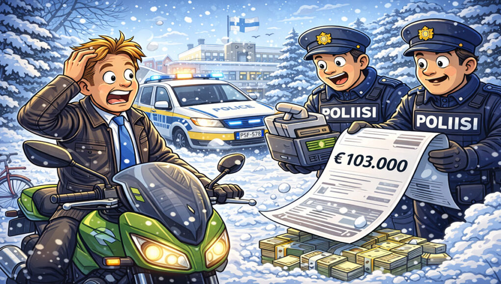 Een steenrijke directeur van een groot bedrijf reed op zijn stoere motor door de hoofdstad ๐ซ๐ฎ Helsinki. Hij reed maar een paar kilometer per uur te hard. Niet supersnel dus. Maar jaโฆ regels zijn regels!