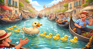 ๐ฎ๐น๐ฆ Waterfile in Venetiรซ! Eigenwijze eend legt het Canal Grande plat...