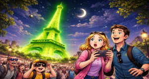 🇫🇷🗼 Oeps! De Eiffeltoren lijkt ineens op een lichtgevende augurk! 🥒✨
