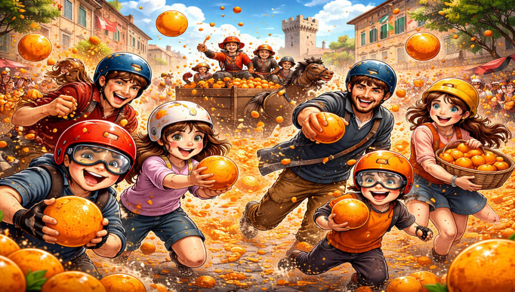 Tijdens een groot feest gooien duizenden mensen massaal met sinaasappels naar elkaar!